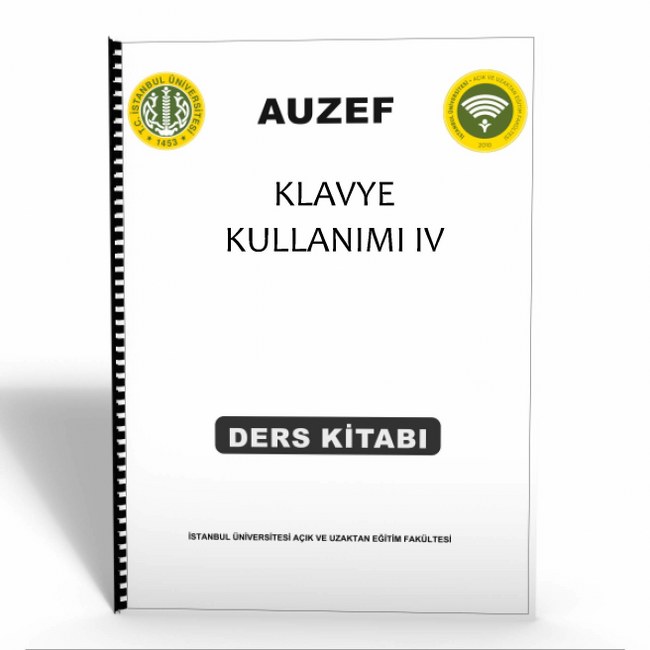 AUZEF Tam Ders Kaynağı:KLAVYE KULLANIMI IV dersinin sisteme yüklü ders notlarının 1-1 orjinal ebat ciltli çıktısıdır. A4 büyük boy ve spiralli baskı. Ara Sınav ve Dönem Sonu Tüm üniteler mevcuttur.