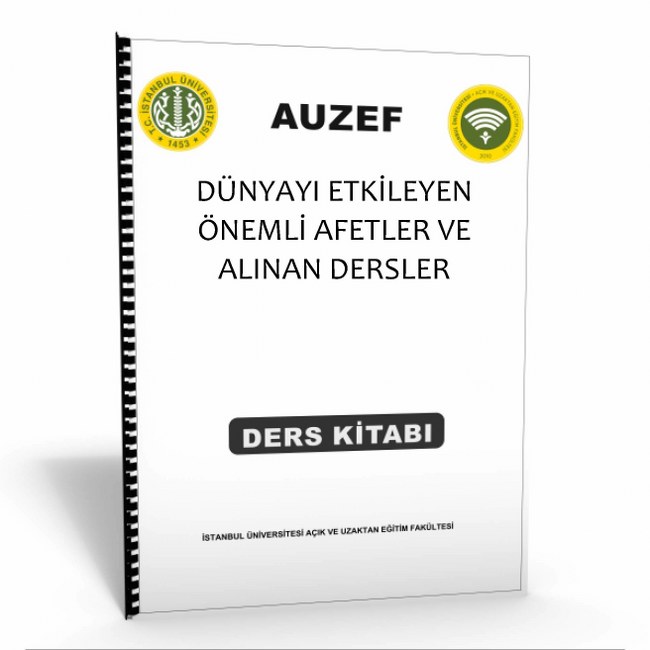 AUZEF Tam Ders Kaynağı:DÜNYAYI ETKİLEYEN ÖNEMLİ AFETLER VE ALINAN DERSLER dersinin sisteme yüklü ders notlarının 1-1 orjinal ebat ciltli çıktısıdır. A4 büyük boy ve spiralli baskı. Ara Sınav ve Dönem Sonu Tüm üniteler mevcuttur.