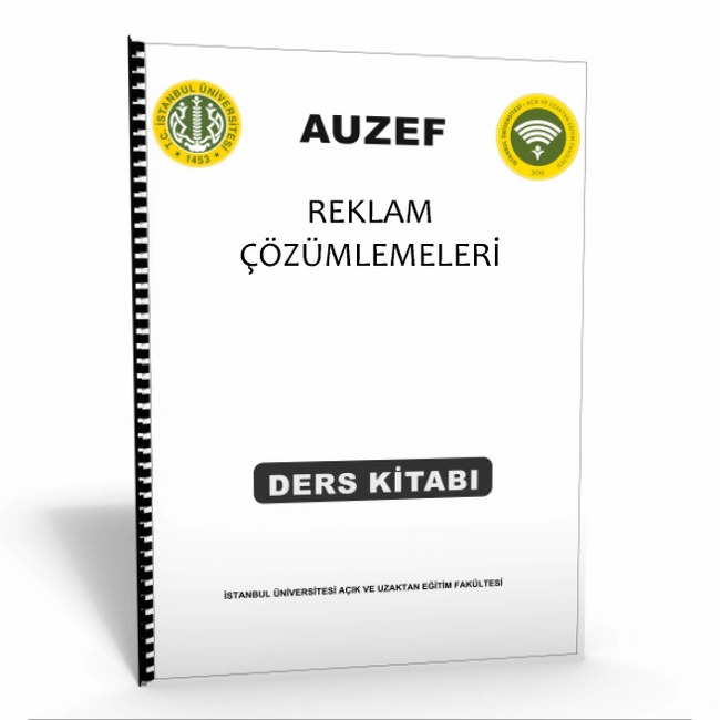 AUZEF Tam Ders Kaynağı:REKLAM ÇÖZÜMLEMELERİ dersinin sisteme yüklü ders notlarının 1-1 orjinal ebat ciltli çıktısıdır. A4 büyük boy ve spiralli baskı. Ara Sınav ve Dönem Sonu Tüm üniteler mevcuttur.