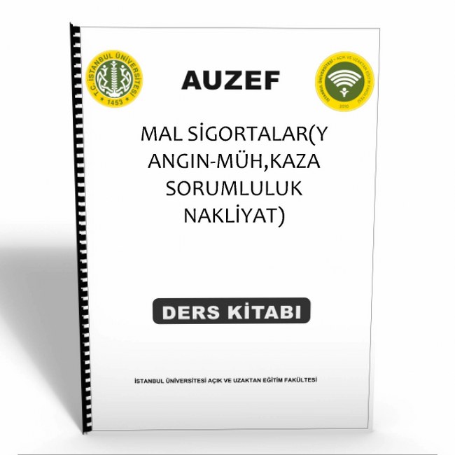 AUZEF Tam Ders Kaynağı:MAL SİGORTALAR(YANGIN-MÜH,KAZA SORUMLULUK NAKLİYAT) dersinin sisteme yüklü ders notlarının 1-1 orjinal ebat ciltli çıktısıdır. A4 büyük boy ve spiralli baskı. Ara Sınav ve Dönem Sonu Tüm üniteler mevcuttur.