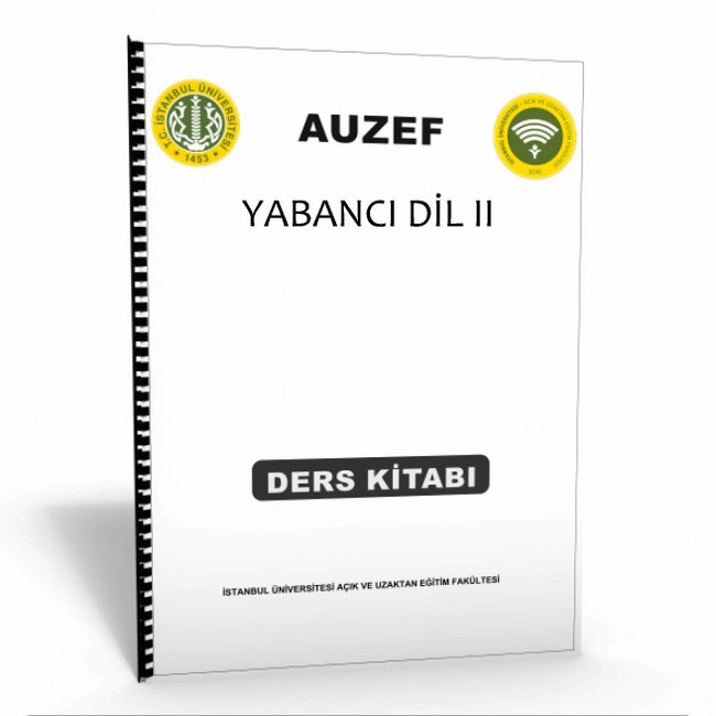 AUZEF Tam Ders Kaynağı:YABANCI DİL II dersinin sisteme yüklü ders notlarının 1-1 orjinal ebat ciltli çıktısıdır. A4 büyük boy ve spiralli baskı. Ara Sınav ve Dönem Sonu Tüm üniteler mevcuttur.